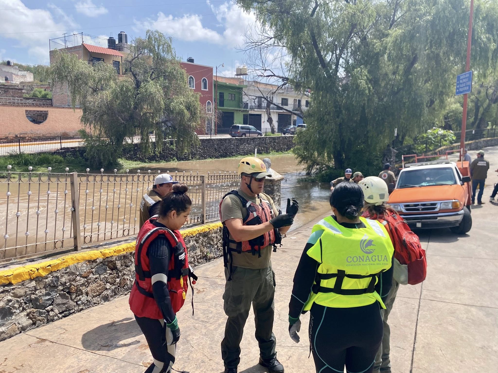 El reporte señalaba que el hombre se habría arrojado desde el puente y tras el aviso corporaciones de emergencia municipales y estatales, con apoyo de la policía local, iniciaron un operativo de rastreo por distintos puntos del afluente, tanto en vehículos como a pie, recorriendo las orillas en un intento por ubicar a la persona.