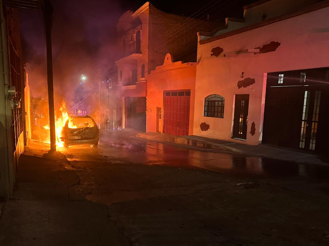 Sin embargo, la noche no terminó ahí, un reporte al 911 señalo que había un vehículo incendiado sobre la calle Juan Pablo II, en la colonia El Puente, al llegar, se encontraron con una camioneta Ford Escape, modelo 2001, envuelta en llamas. De inmediato se solicitó el apoyo de Protección Civil de Teocaltiche, que logró sofocar el incendio.